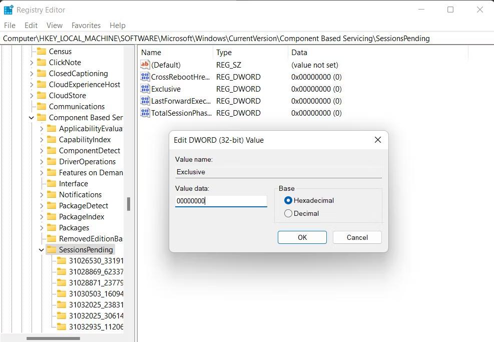 ComputerHKEY_LOCAL_MACHINESOFTWAREMicrosoftWindowsCurrentVersionComponent Based ServicingSessionsPending