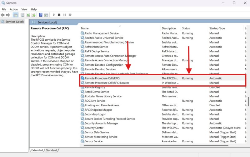 4.すべてのRPCサービスがWindows 11 PCまたはラップトップで実行されていることを確認してください
