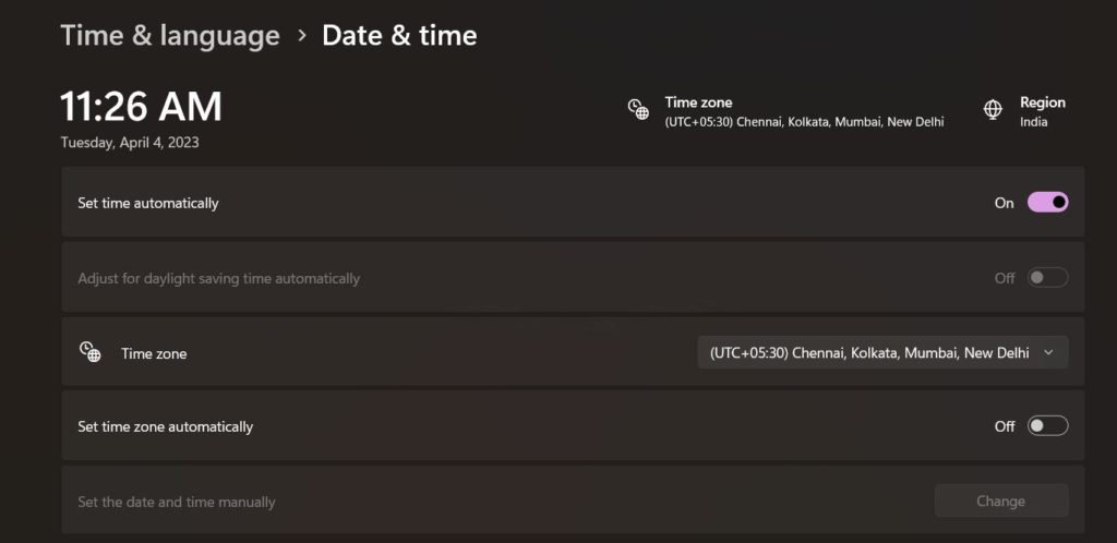 PCの日付と時刻の設定が誤っていないと、システムの証明書が無効になり、Windowsストアやその他のアプリケーションの機能に影響を与える可能性があります。この問題を解決するための最初のステップは、PCの日付と時刻が正しく設定されるようにすることです。
