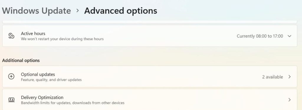 ステップ6:必要なすべての更新がインストールされたら。をクリックします高度なオプション右パネルのタブ。