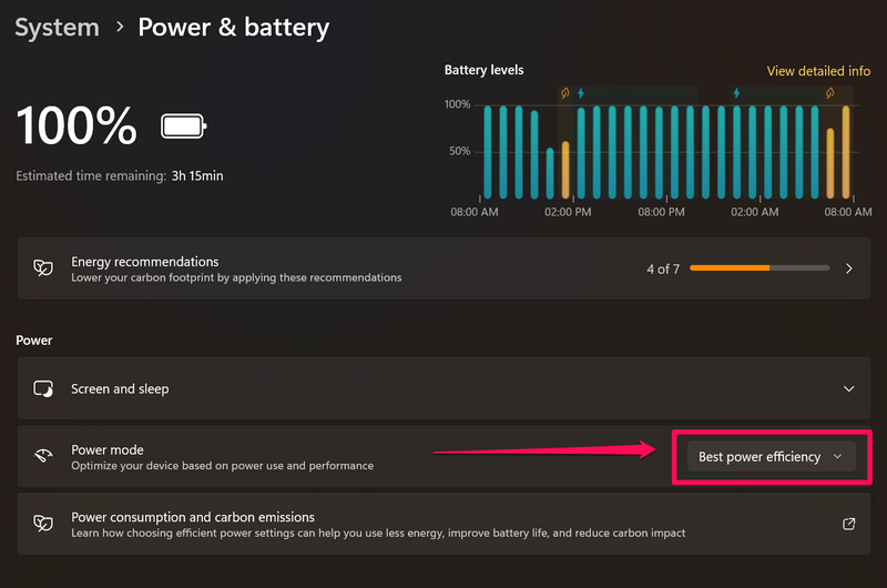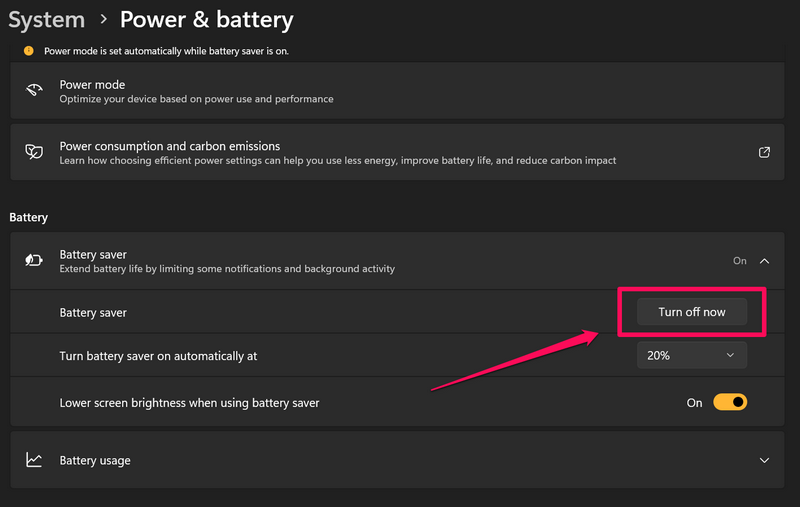 3. Windows 11のバッテリーセーバーモードをオフにします