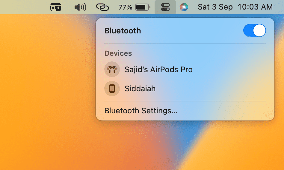 1。をクリックしますコントロールセンターメニューバーのアイコン。