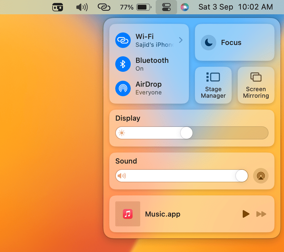 4。ヒットしますコントロールセンターメニューバーのアイコン。