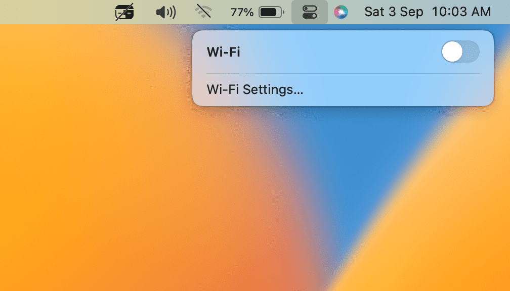 2。選択しますWi-FiWiFiスイッチを切り替えますオフ。待ってください30秒そして電源を入れてください。