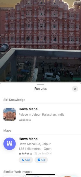 たとえば、iPhoneを使用して文化的に重要な記念碑の画像をクリックすると、視覚的な検索機能が画像で自動的に識別され、Webから供給されたさまざまな情報を表示します。