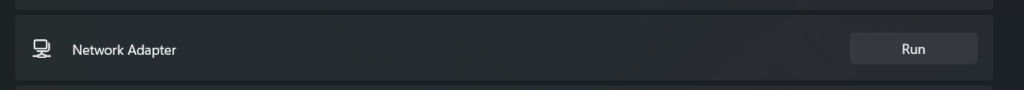 4。次の画面で、をクリックします走る隣のボタンネットワークアダプター。