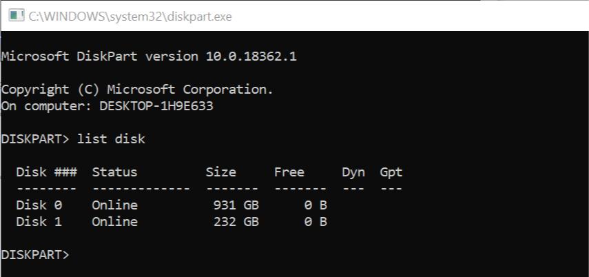 3。リストディスクを入力し、Enterを押します。これにより、コンピューターに接続されたディスクのリストが表示されます。