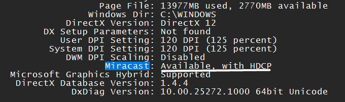 4。ここで、あるかどうかを確認しますHDCPで利用可能次のメッセージミラカスト。このようなメッセージがない場合、Windows 11 PCはMiracast機能と互換性がありません。