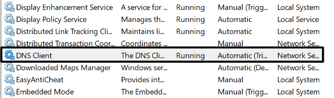 2。[サービス]タブが開かれたら、検索しますDNSクライアントサービスとダブルタップを開きますプロパティセクション。