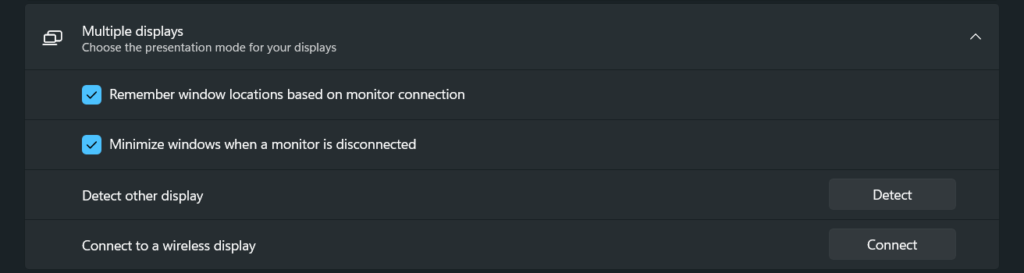 2。その後、に移動します複数のディスプレイのセクション画面セクションとそこから現在のディスプレイを切断します。