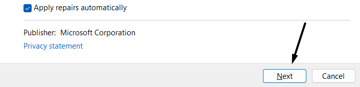 2。トラブルシューティングが開かれたら、をクリックします高度な下部にあるオプションを確認してください修理を自動的に適用します。