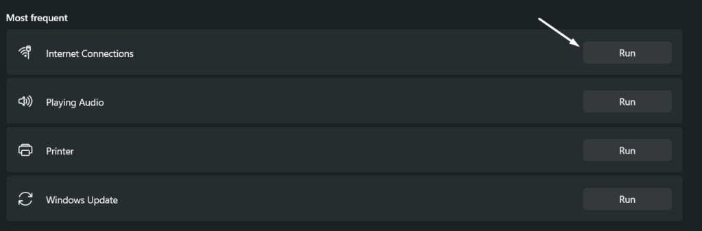 3。次に、をクリックします走るの隣のオプションインターネット接続トラブルシューターを開始するためのトラブルシューティング。