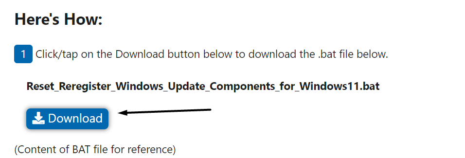1。最初にクリックする必要がありますここWindows 11 PCに実行可能なバットファイルをダウンロードします。