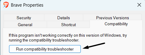 2。に行きます互換性タブをクリックします互換性のトラブルシューティングを実行しますツールを開始するボタン。