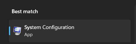 1。を押しますWindowsキーを開くWindows検索ボックスタイプシステム構成その中に。