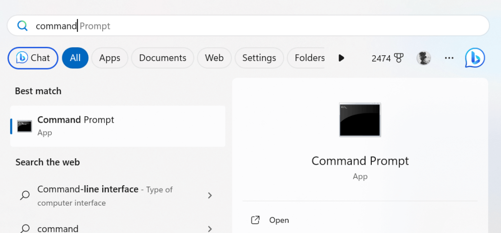Windowsキーを押してから、コマンドを入力して、管理権を使用してコマンドプロンプトを開きます。