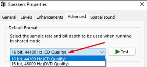 したがって、システムのオーディオサンプルレートとビットの深さを低く保ち、問題を修正するかどうかを確認してください。同じことを説明する記載されているプロセスに従ってください。