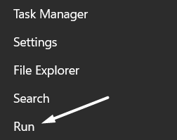 1。右クリックしますスタートボタンシステムのタスクバーで選択して選択します走るそれから開きます走るユーティリティ。