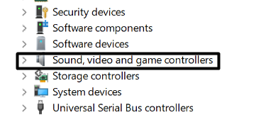 1。開きますデバイスマネージャユーティリティ あなたのPCで 拡張しますサウンド、ビデオ、ゲームコントローラーセクション。