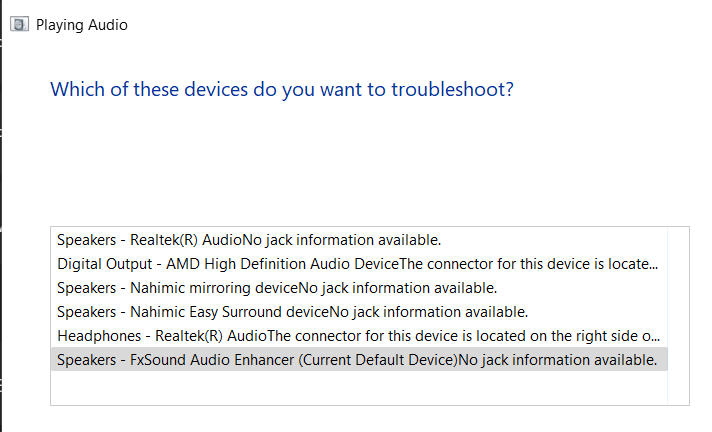 3。次のウィンドウで現在のオーディオ再生デバイスを選択し、次ボタン。