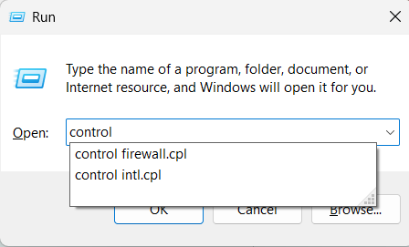1。ヒットしますWindows + r開くショートカット走る、 タイプコントロールその中に、そして押します入力。