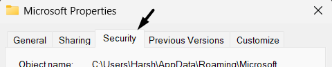 4。で安全タブ、この特定のMicrosoftフォルダーにアクセスするために必要なユーザーまたはユーザーを選択します。