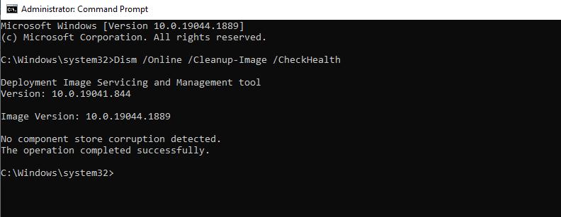 Dism Toolが機能し始め、コマンドプロンプトウィンドウでその進行状況を示します。終了したら、操作が成功したかどうかを示すメッセージが表示されます。
