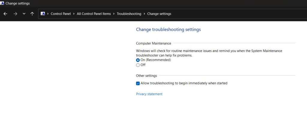 このエラーメッセージが発生した場合、組み込みのシステムメンテナンストラブルシューターを実行したり、ディスクのクリーンアップやエラーチェックなどの手動メンテナンスタスクを実行したりすることで、問題のトラブルシューティングを試みることができます。エラーを解決するために使用できるいくつかの可能なソリューションを以下に示します。