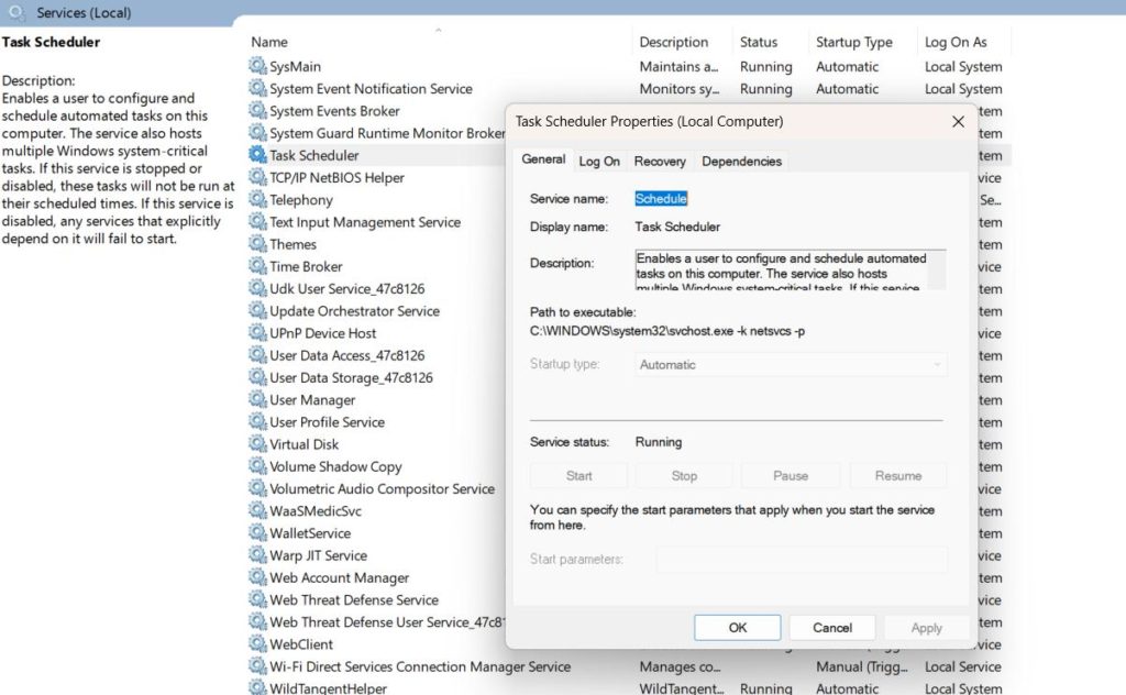 ステップ3:[サービス]ウィンドウで、「」を探します。タスクスケジューラ" サービス。