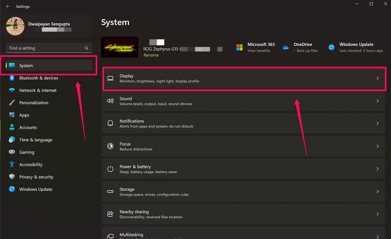 Windows 11の画面問題の周りに黄色の境界線を修正しようとするもう1つのことは、PCまたはラップトップのディスプレイのスケールを変更することです。この方法は、Windows 11のスケーリングバグを取り除くことが知られています。これにより、PCまたはラップトップの画面の周りに黄色の境界線が表示される可能性があります。