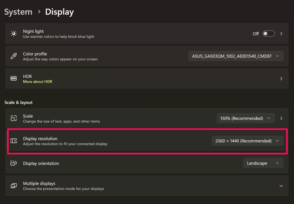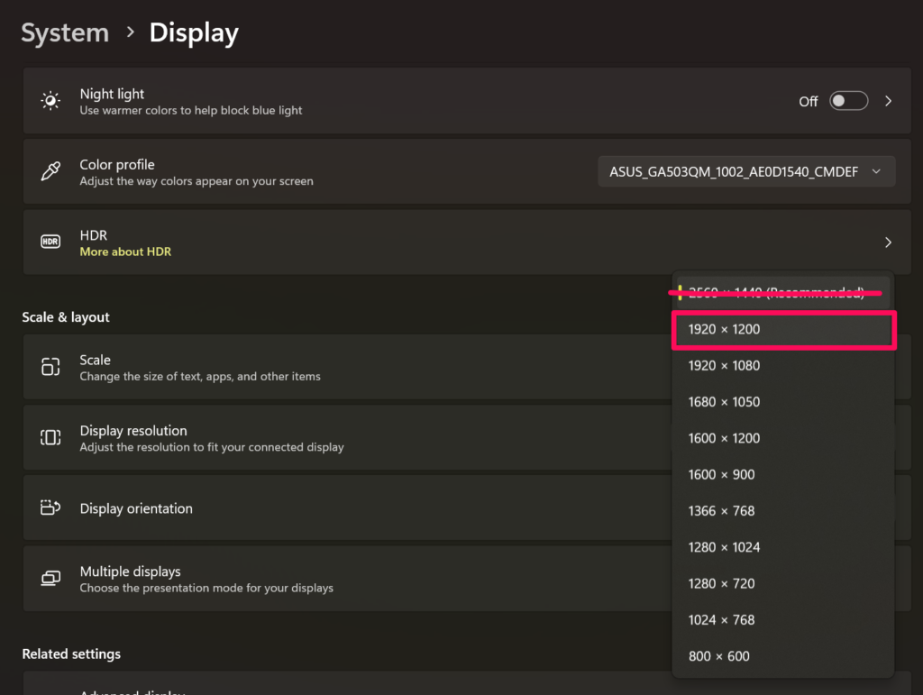 スケールを変えるトリックが機能しなくなり、Windows 11デバイスの画面の周りに黄色の境界線が表示されている場合は、ディスプレイの解像度を一時的に変更して、機能するかどうかを確認することをお勧めします。