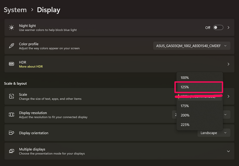 3. Windows 11のディスプレイスケーリングを一時的に変更します