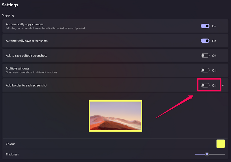 6. Windows 11のスニッピングツールの境界線を無効にします