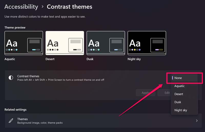 3。ここでは、を確認してくださいコントラストのテーマオプションはに設定されていますなし。