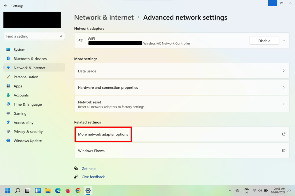 3。クリックしてくださいより多くのネットワークアダプターオプション。