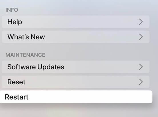 2。アップルテレビを再起動します
