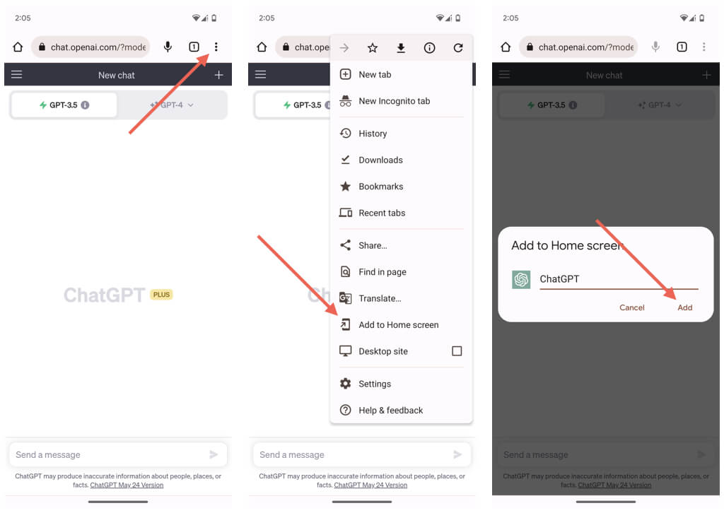AndroidまたはiPhoneでChatGPTのWebバージョンを使用するには: