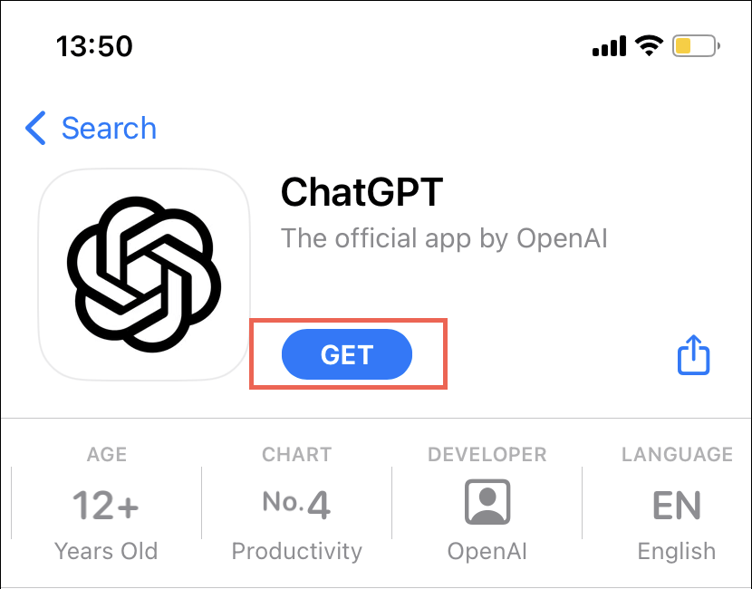 注記:先に進む前に、iOSアプリの出版社が「Openai」であることを確認してください。