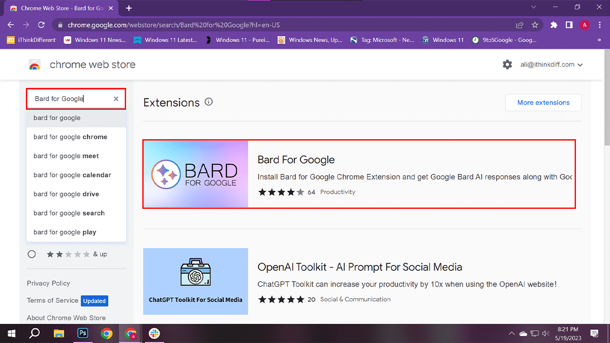 - にアクセスしてくださいクロムウェブストアWeb>検索バータイプGoogleのバード>「」をクリックします。Googleのバード" 拡大。