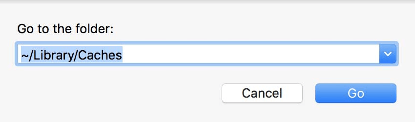 ステップ3: `〜/library/caches`を入力し、Enterを押します。
