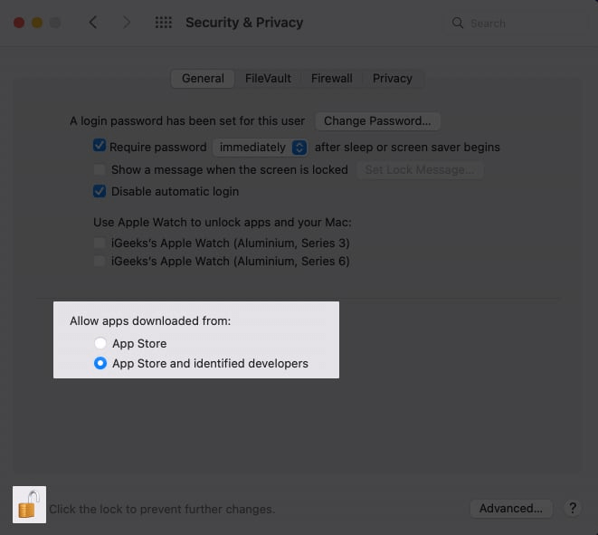ステップ4:「アプリストアと識別された開発者」オプションを選択します。