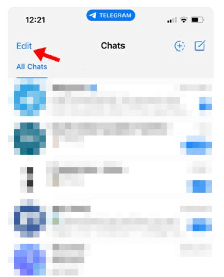 ステップ1:iPhoneで電報アプリを起動することから始めます。左上隅にある編集ボタンをタップします。