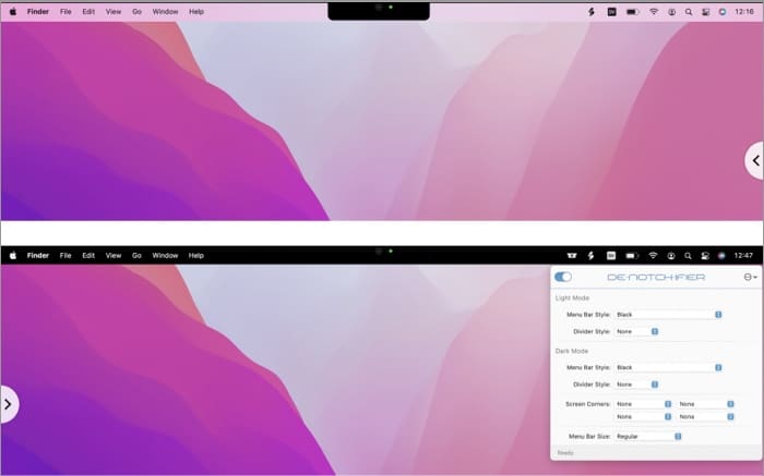 MacBook Pro NotchをNinjaのように消えることを約束する簡単なアプリ。それは、有効になったときにメニューバーを黒くし、ノッチを効率的に隠すトグルを誇っています。