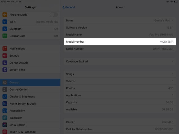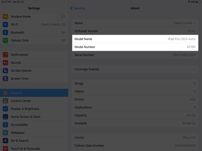 iPadがオフになっているか、操作できない場合に備えて、iPadモデルを知りたい場合。これが別の方法です。