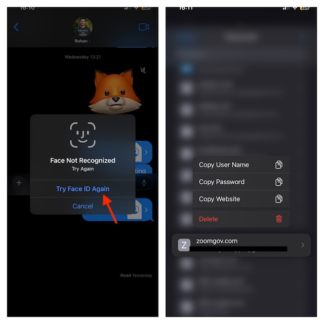 - パスワードを選択した後、Face ID、Touch ID、またはデバイスパスワードを使用して自分自身を認証する必要があります。
