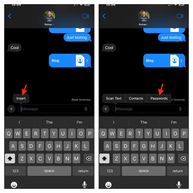 この新しいアドオンを利用して、iOS 17のiPhoneのメッセージ内に連絡先とパスワードを直接挿入できます。