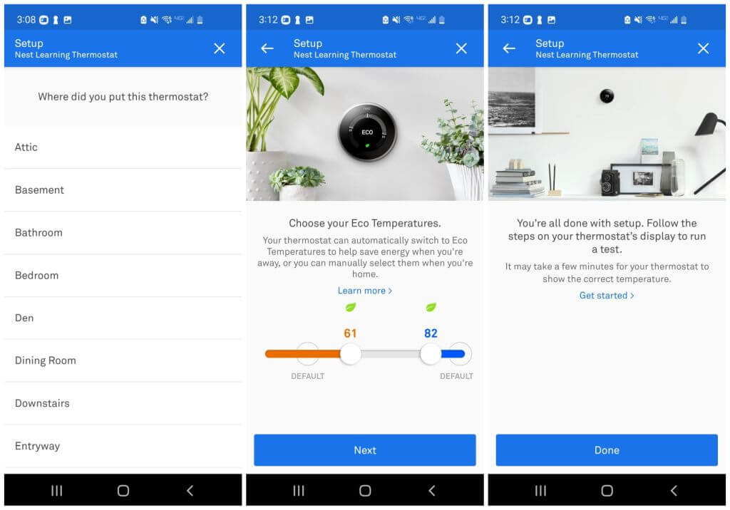 これで、巣のサーモスタットが完全にインストールされます。インストールを終了し、新しいスマートサーモスタットの使用を開始するには、以下のNestアプリのセットアッププロセスを実行するだけです。