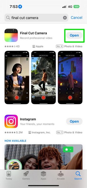 1。iPhoneでこれを読んでいる場合は、このリンクを使用してくださいに最終カットカメラアプリのリストを直接開くデバイスでステップ4までスキップします。