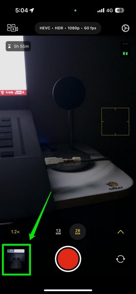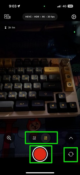 一方ボタンを記録/停止しますそしてカメラスイッチボタン最終カットカメラアプリには、iOSカメラアプリと同じ場所にあり、レンズスイッチャーそれらのすぐ上。これにより、iPhoneの複数の背面カメラレンズを切り替えることができます。