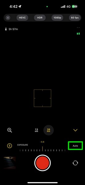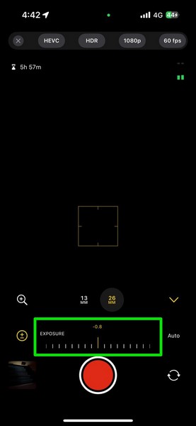これで、露出制御ボタンに到達すると、ユーザーはiPhoneの最終カットカメラアプリのビデオの全体的な露出を調整できます。
